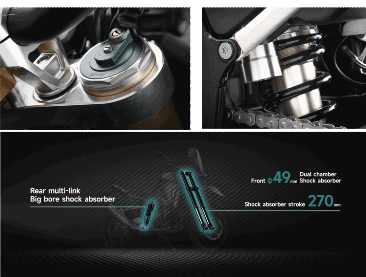 Rear suspension    Adjustable preload/damping, external airbag, Yu An